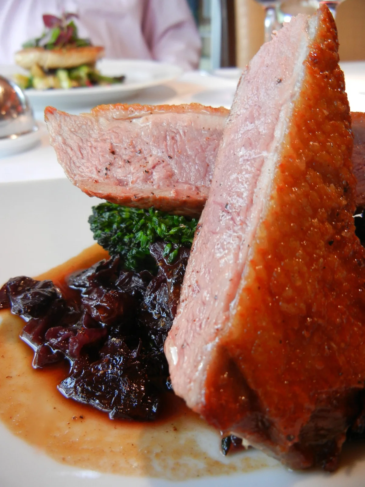 Dessert? Of course. Being a chocoholic, I opted for the chocolate ganache squares with chocolate ice cream, cherry syrup and the devilishly good roasted sea salted Marashchino cherry.